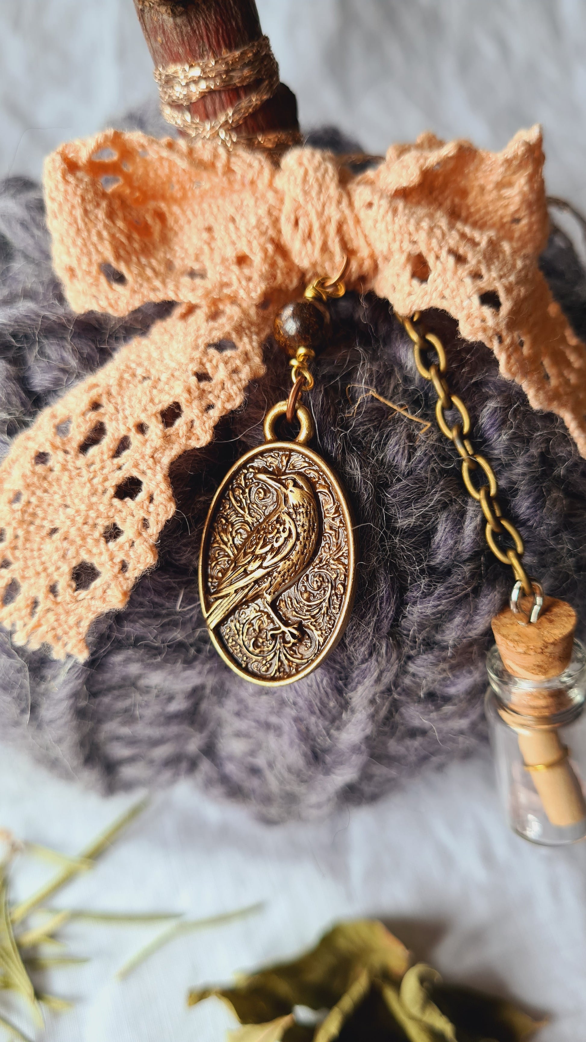 Une création ésotérique artisanale, pièce unique, idéale comme talisman spirituel, décoration de Samhain ou cadeau magique.